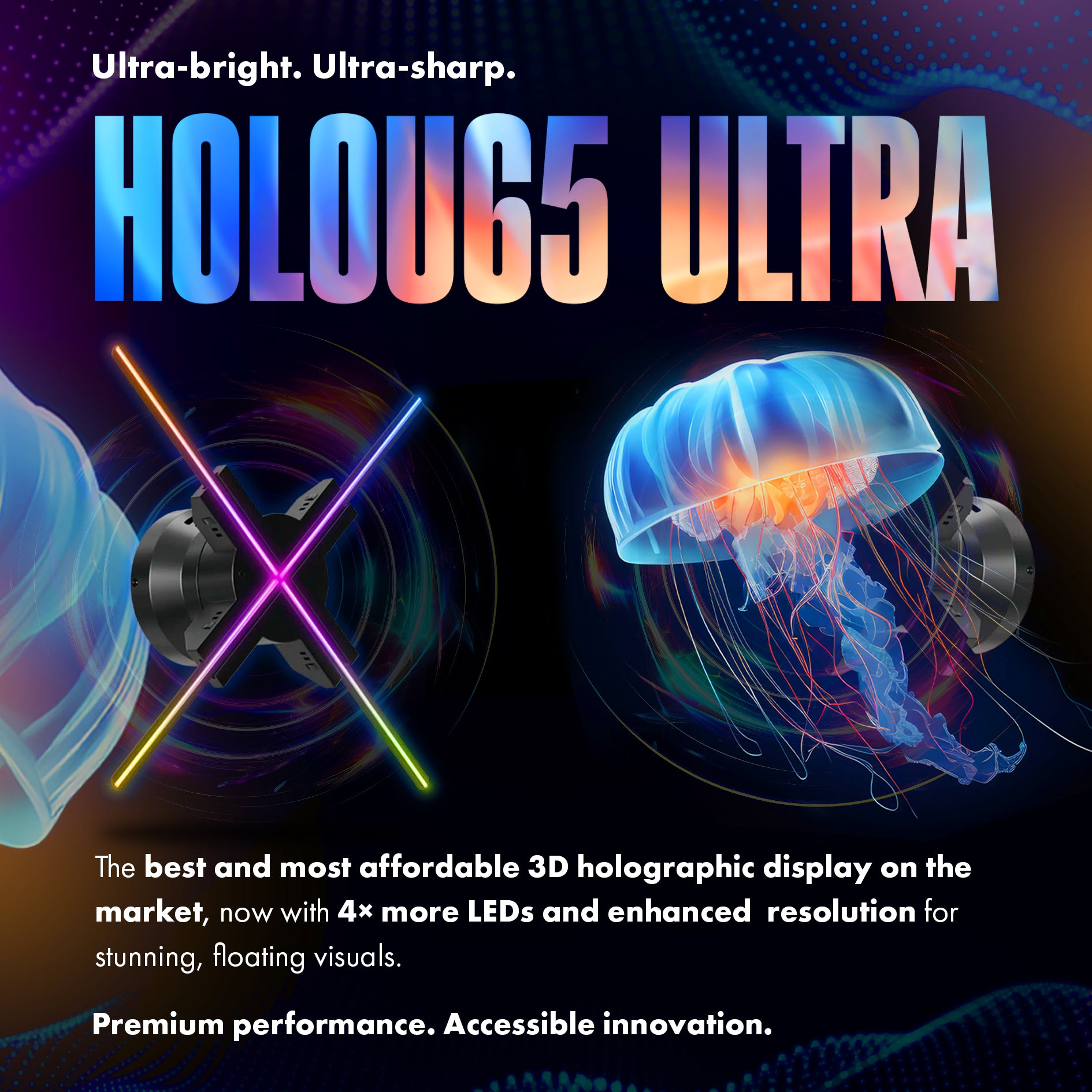 Holofex's holographic display systems showcase top-of-the-line technology. Whether you need a portable desktop solution or a large display wall, Holofex delivers devices that astonish audiences and elevate atmosphere.